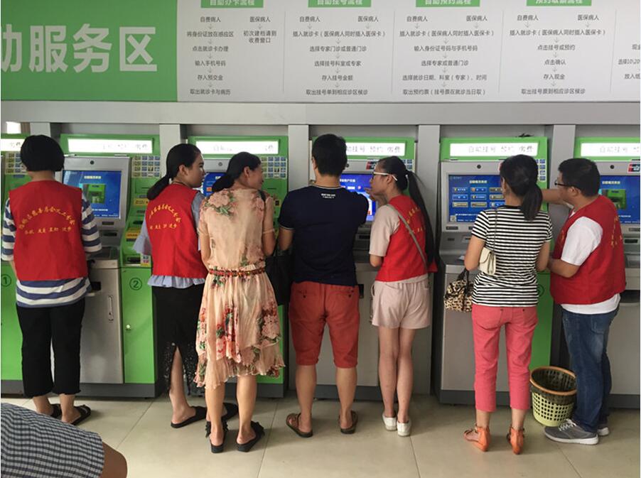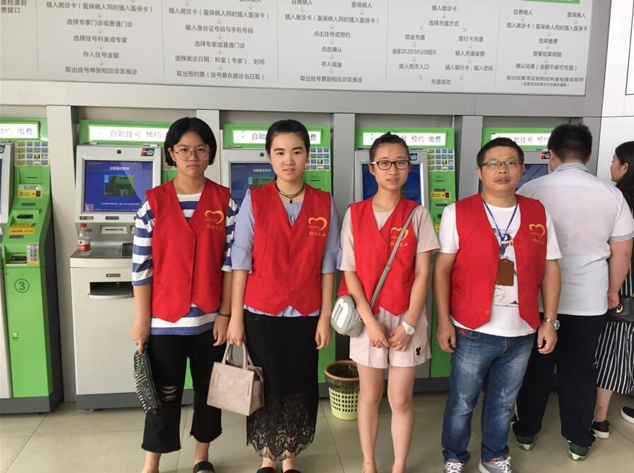 7月18日,早上7点30分,义工高跃贵、颜佳辰、林琳、叶雨欣,来到路桥医院(老路桥三医院)门诊大厅帮助患者挂号、缴费,引导患者就诊,弘扬奉献、友爱、互助、进步的义工精神。