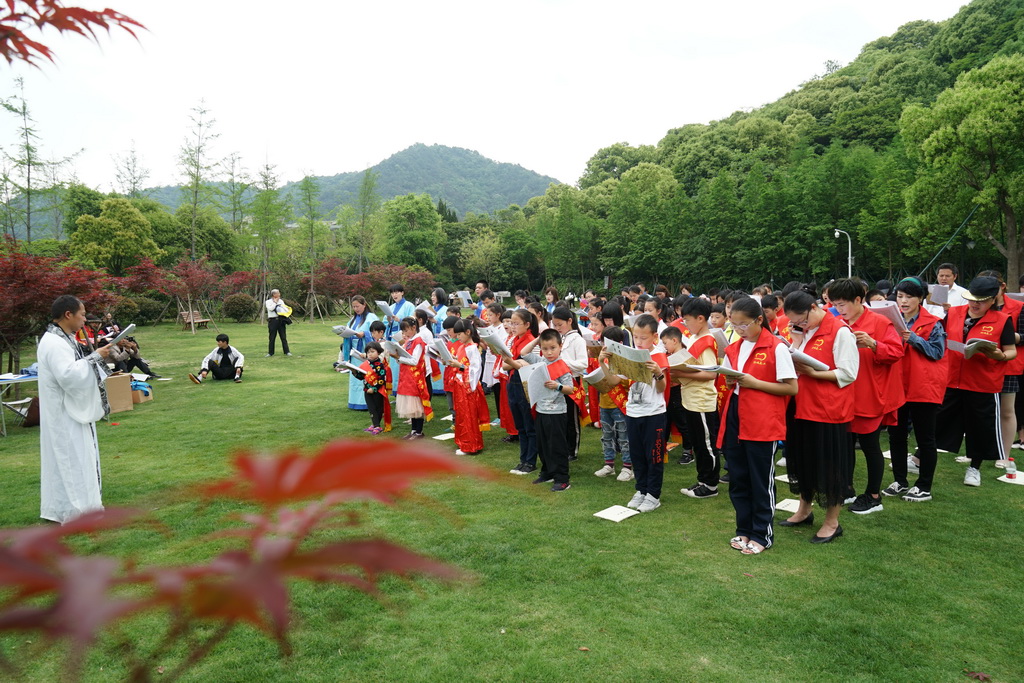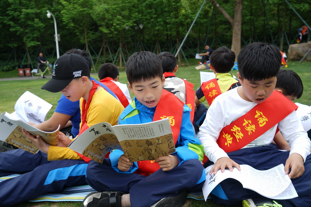 在4月23日世界读书日来临之际,4月21日,台州市路桥慈善义工、路桥桐屿小学、蓝天学校、天晨学堂近百名师生,来到路桥中央山公园开展户外诵读国学经典活动,百名学生跟着老师们认真诵读国学经典《大学》。