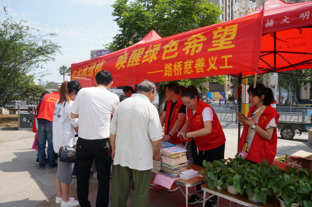 “我要换这盆,这是我的旧书”,“我也换一盆”……2018年4月22日上午,在世界地球日来临之际,路桥慈善义工在中盛志愿亭开展“旧书换绿植