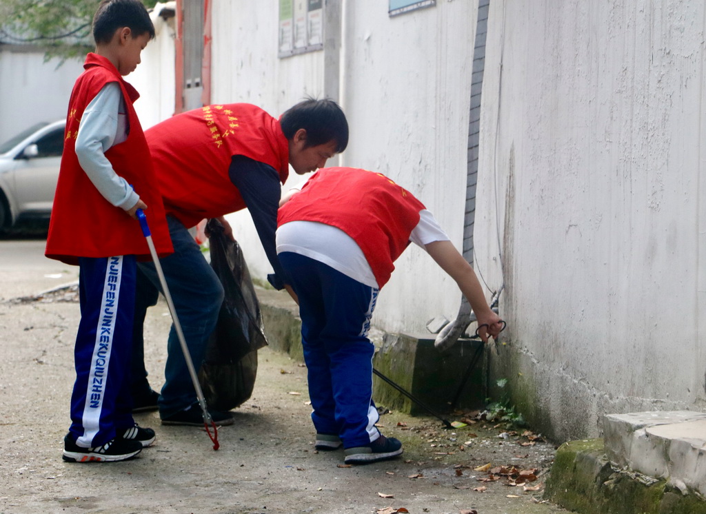 实验中学亲子义工服务队在翁庆老师的带领下,有的志向临街商铺及市民宣传环境保护知识,向他们耐心讲解环境保护对我们健康生活的重要性。有的前往三无院落打扫花园,清除墙上的牛皮藓,义工们分工明确,环保宣传活动有条不紊的进行着。小义工们通过自己微小的力量向市民们传递着环保意识。