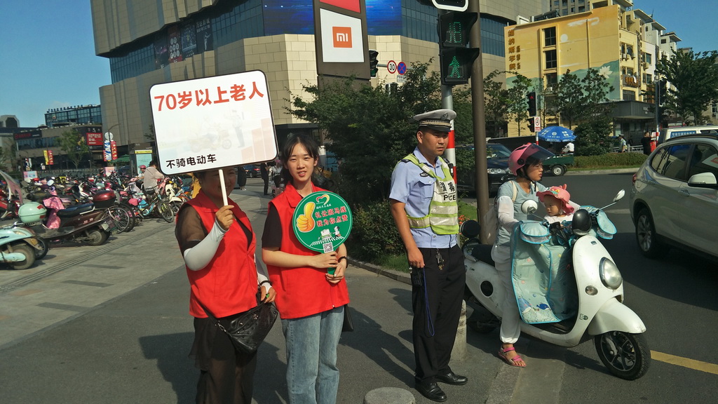 当天下午16时,文明交通安全宣传劝导活动正式开始。义工们协助交警维护路口交通秩序外,劝导机动车和非机动车驾驶人在行至路口、拐弯路口要减速慢行,遇有行人通过要停车让行,确认安全后再通过。还给未戴安全头盔的电动自行车驾驶人讲解交通安全重要性,劝导驾驶人树立骑行安全意识。