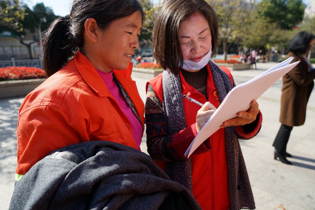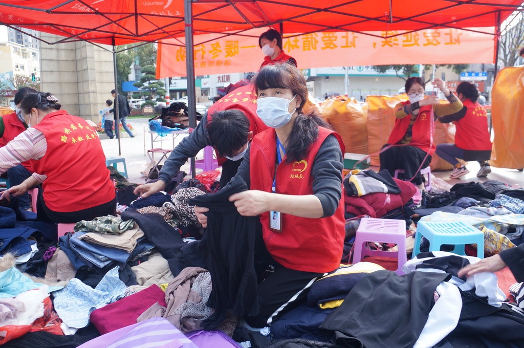 义工们在各自的岗位上忙碌着,有的负责接待捐衣的群众,有的负责筛选衣服,有的负责整理打包~~~~~~~~~分工明确,干劲十足,部分老义工不仅从家里拿来闲置衣物,而且一直在忙前忙后的工作。寒冷的天气里,每个人头上都是汗水,广场上往来的市民们都称赞义工们的善举。