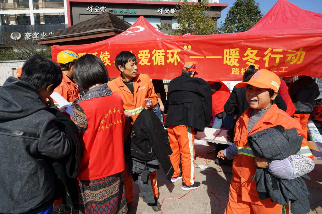活动当天,共募集衣物15大包(其中冬衣948件,裤子600条,鞋子27双,还有围巾,被子等)。活动现场环卫工人直接领取64件新衣,其余衣物将捐赠给湖南新晃侗族少数民族山区,为他们送去冬日温暖。